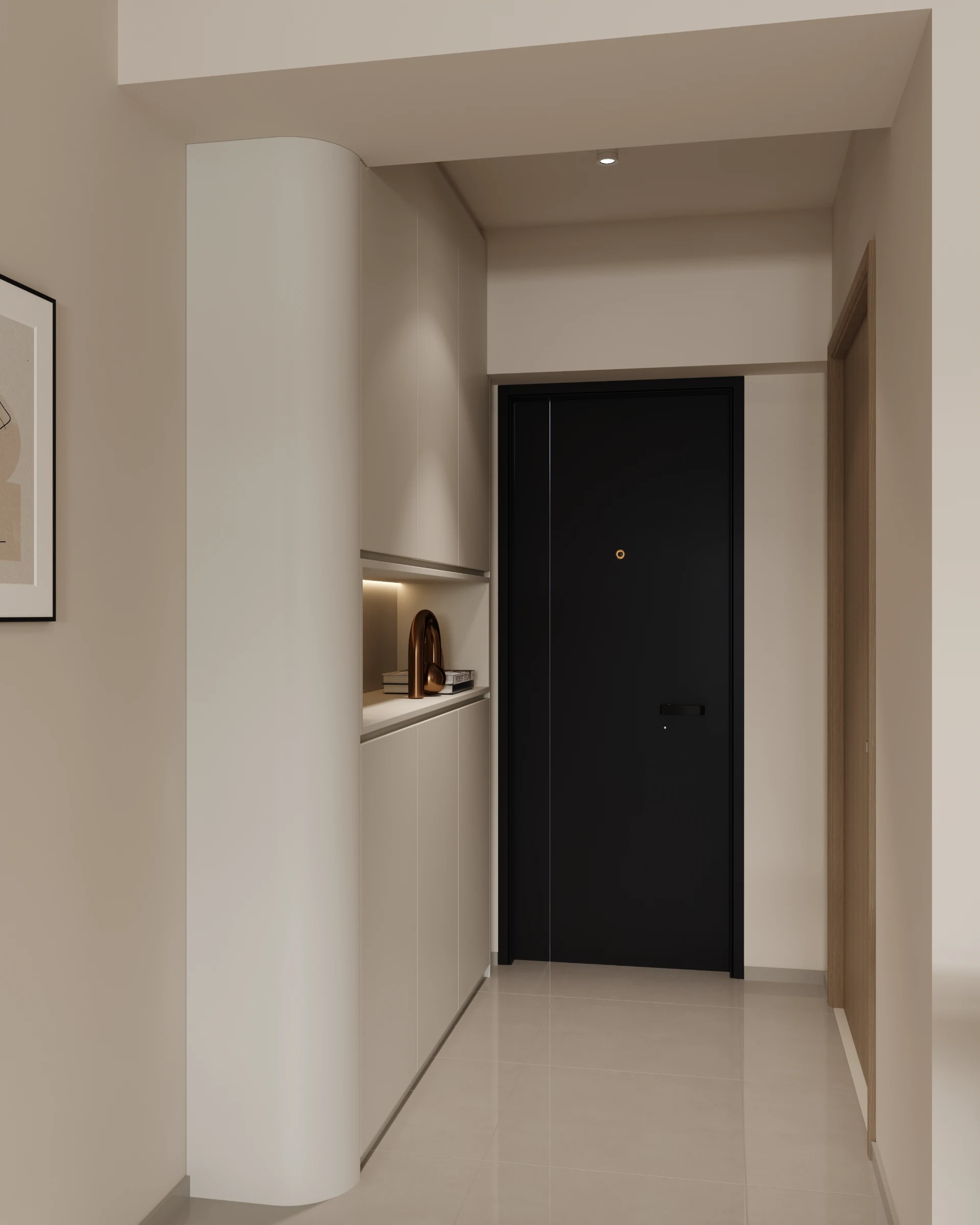 Bright, soft, and inviting, this home at 183A Boon Lay Ave uses creamy whites, soft beiges, and natural tones to create a serene and welcoming atmosphere. Curved walls and carefully placed lighting enhance the gentle, approachable feel, while full-height carpentry and open niches provide practical, clutter-free storage for the whole family. Functional, safe, and thoughtfully designed, every corner balances comfort with style.