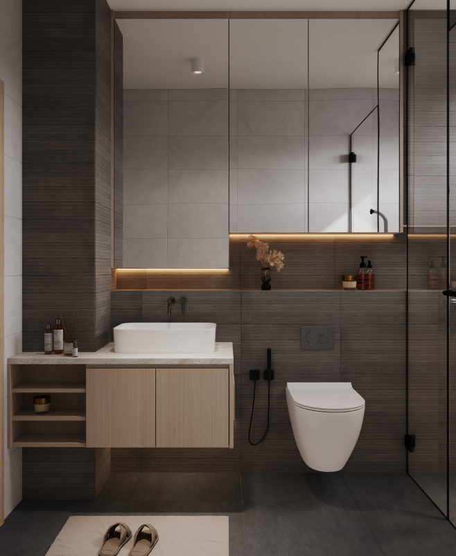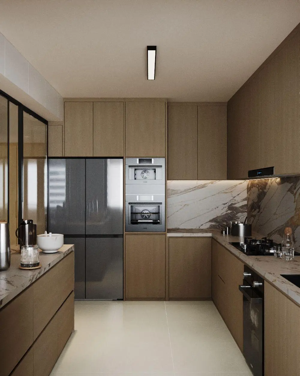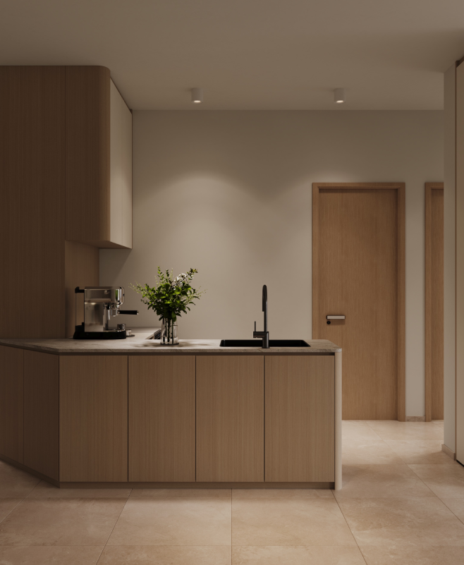 The design leans into quiet luxury, a style felt more than seen. Beauty lies in the subtle interplay of shadow and light, the warm grain of wood and the abstract veining of marble. A sanctuary where purpose and aesthetics align, creating a calm, cohesive home that feels both curated and effortlessly lived-in.