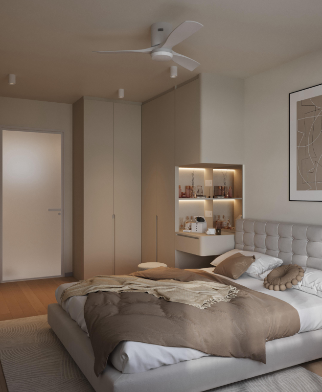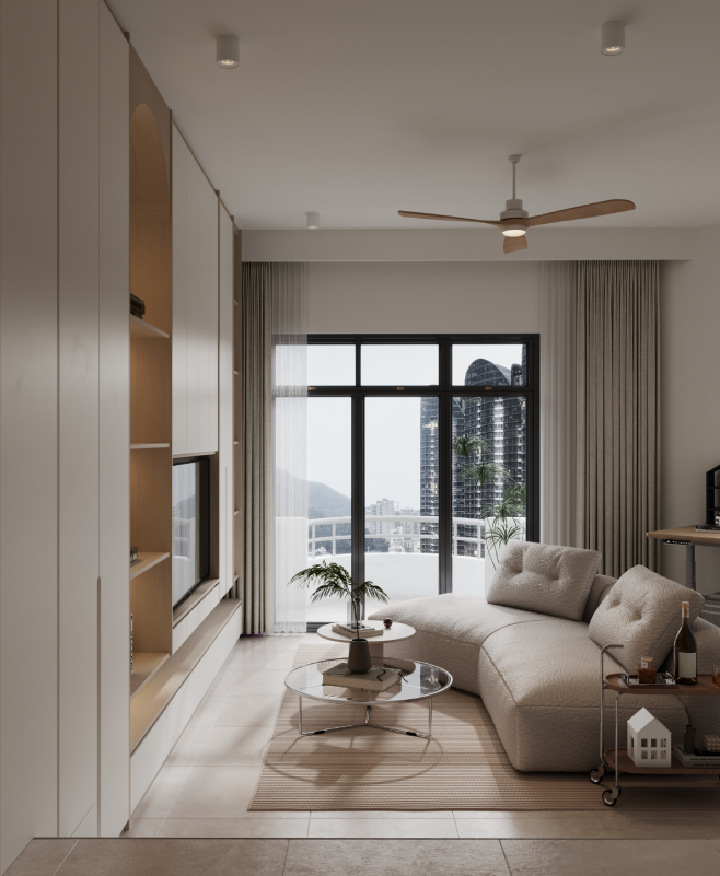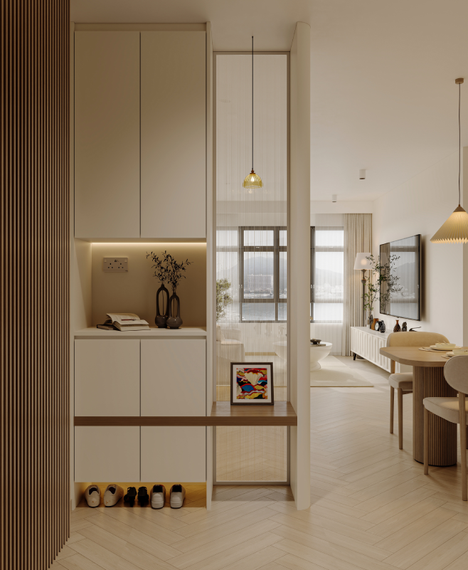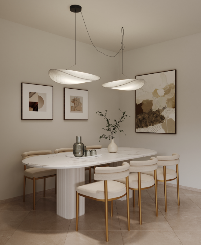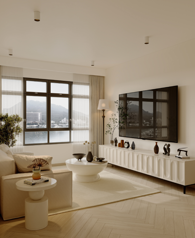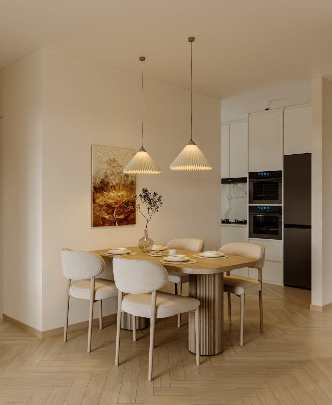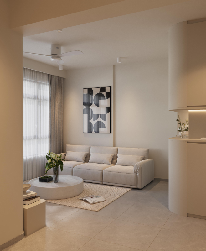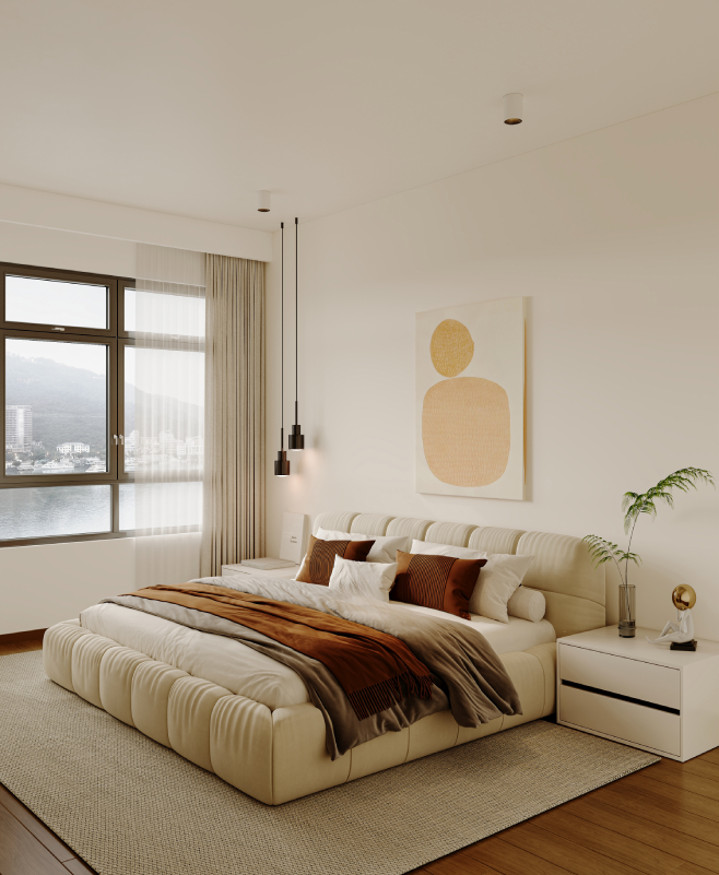 A soothing palette of creams and soft beiges sets the tone for calm, accented by bold flashes of colour. This style embraces both minimalism and artistic expression — proof that simplicity is never boring.